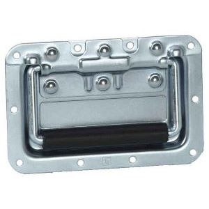 Klappgriff gefedert in 8 mm tiefer Einbauschale. Stahl verzinkt mit verstärkter Montageplatte, verbreiterter Bügel mit schwarzem PVC-Griff.