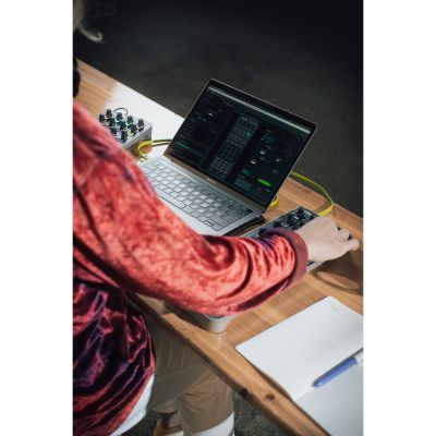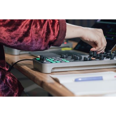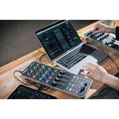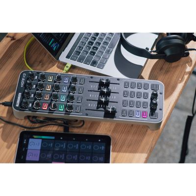 Der Controller ist in einem hochwertigen Druckguss-Metallgehäuse untergebracht und mit verschraubten Potis sowie taktilen Tasten ausgestattet – ideal für den harten Einsatz auf Tour oder im Club. Trotz seiner Stabilität bleibt das Gerät schlank und platzsparend und fügt sich nahtlos neben Mixern und Audiointerfaces in jedes Setup ein.