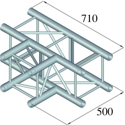 Mit seiner 3-Wege-Form erlaubt das T-Stück das Verbinden von drei Traversen in einem rechten Winkel – ideal zur Realisierung von T-Strukturen, Traversenrahmen, LED-Wänden oder Hängekonstruktionen. Die kompakten Maße von 71 x 50 x 29 cm ermöglichen den platzsparenden Einsatz in verschiedensten Konstruktionen.