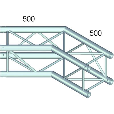 Die Besonderheit dieser Traverse liegt im 135°-Verbindungswinkel, der eine Vielzahl kreativer und technischer Konstruktionen ermöglicht. Damit lassen sich gezielt nicht-rechtwinklige Elemente realisieren – zum Beispiel für polygonale Designs, abgeschrägte Bühnenkanten oder architektonische Sonderlösungen. Als 2-Wege-Ecke verbindet sie zwei Traversen in einem definierten Winkel und sorgt für präzise Übergänge im Gesamtaufbau.