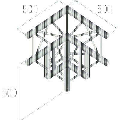 Die kompakten Maße von 50 x 50 x 50 cm erlauben eine einfache Integration in bestehende Traversensysteme. Trotz der massiven Bauweise bleibt das Bauteil mit einem Gewicht von 10,00 kg gut handhabbar. Dank der standardisierten Maße und Anschlüsse lässt sich die 3-Wege-Ecke nahtlos mit anderen Komponenten der ALUTRUSS GL400-Serie kombinieren.