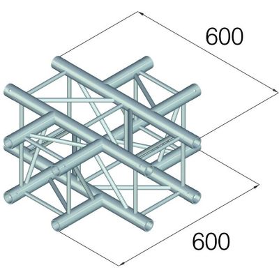 Mit seinen großzügigen Abmessungen von 60 x 60 x 40 cm und einem Gewicht von 12,22 kg eignet sich das GL400-C41 ideal für tragende Knotenpunkte in großen Traversensystemen. Es erlaubt die Verbindung von vier Traversenachsen in einem stabilen Zentrum – z. B. bei Deckenkonstruktionen, Lichtbrücken oder Bühnenportalen.