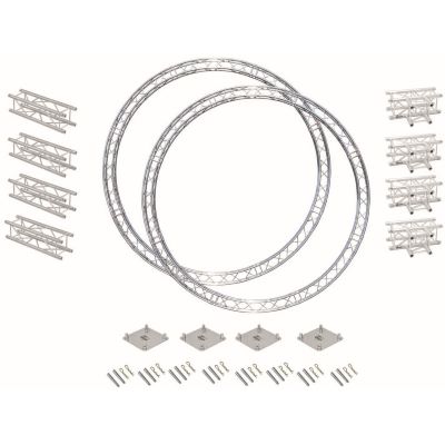 Die acht enthaltenen 45°-Kreiselemente ermöglichen zusammen einen vollständigen Innenkreis mit 6 m Durchmesser. Sie lassen sich einfach in das System integrieren und sorgen für eine gleichmäßige, stabile Rundkonstruktion – ideal für zentrale Installationen, kreisförmige Beleuchtung oder hängende Traversenkreise über Bühnen und Tanzflächen.
