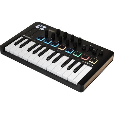 Der Arturia MiniLab MKIII ist ein lompakter Plug-and-Play-MIDI-Controller der neusten Generation mit hochwertiger Tastatur, griffigen Pads, Fadern, Drehreglern und einem Premium-Software-Bundle für eine nahtlose DAW-Integration.