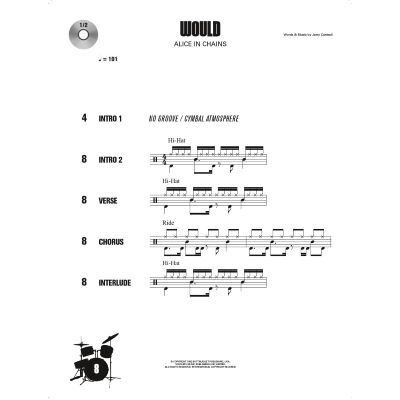 Alle Songs sind in übersichtlichen Leadsheets notiert. Jeder Song ist in die entsprechenden Songteile wie Intro, Vers, Refrain oder Bridge gegliedert. Die zugehörigen Schlagmuster sind klar und benutzerfreundlich aufbereitet. Das hilft insbesondere Einsteiger:innen und fortgeschrittenen Spieler:innen, sich schnell im Song zurechtzufinden und sich voll auf das eigene Spiel zu konzentrieren – ganz ohne langes Notenstudium.