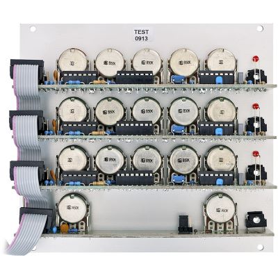 - Bedienelemente pro Filter: Filter-Amplitude, Filterresonanz, Filter-Frequenz, LFO/ext.CV Amplitude, LFO-Frequenz
