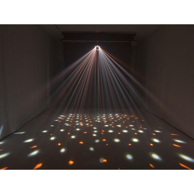 - Rotierender Derby für Spiegelkugeleffekte mit fünf 3-W-LEDs (R, G, B, A, W)