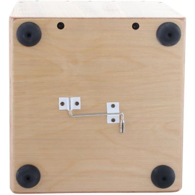 Mit einer Größe von 355 × 296 × 292 mm ist das Cajon angenehm tragbar und bietet gleichzeitig eine ausgewogene Spielfläche für differenzierte Sounds. Die 2,8 mm starke Zebraholz-Frontplatte sorgt für eine direkte Ansprache und definierten Ton, während die 12 mm dicken Seitenwände und die 7 mm starke Rückwand das Instrument stabil und klanglich ausgewogen machen.