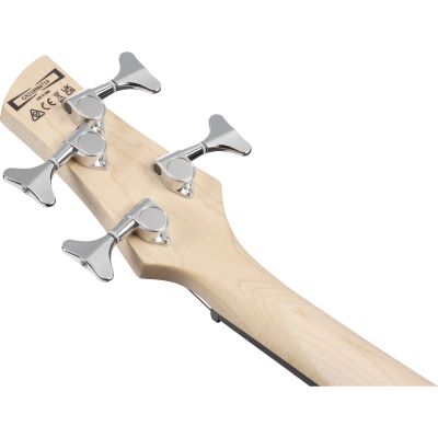 Der Korpus aus Pappel sorgt für ein ausgewogenes Klangfundament mit klarer Ansprache und guter Balance. Der geschraubte Ahornhals mit Jatoba-Griffbrett bietet ein angenehmes Spielgefühl und zuverlässige Stabilität. Das schlanke GSRM4-Halsprofil eignet sich hervorragend für kleinere Hände oder für schnelle, flexible Spielweise. Dank der kompakten Bauweise ist der Bass auch ideal für den mobilen Einsatz oder den Proberaum mit begrenztem Platzangebot.