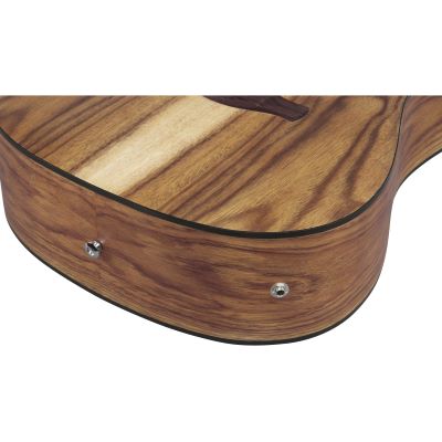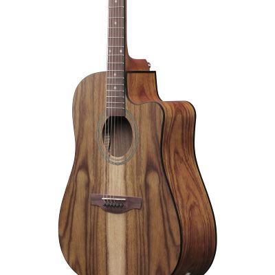 Die Decke, Zargen und Boden aus weißem Siris sorgen für einen ausgewogenen Klang mit klarer Ansprache und brillanten Höhen. Der Meranti-Hals mit Nanduholz-Griffbrett liegt angenehm in der Hand und bietet ein komfortables Spielgefühl – ideal für Anfänger und Fortgeschrittene gleichermaßen. Die Cutaway-Dreadnought-Form ermöglicht zudem einen einfachen Zugang zu den hohen Lagen.