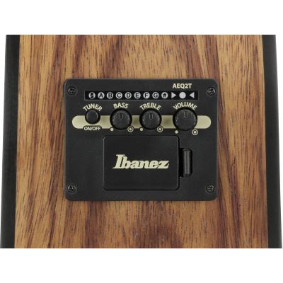 Die Gitarre ist ausgestattet mit einem Ibanez Undersaddle Tonabnehmer und einem Ibanez AEQ-2T Vorverstärker, inklusive eingebautem Stimmgerät. So bist du direkt bereit für den Einsatz am Verstärker oder im Mischpult – ohne Zusatzgeräte oder aufwendiges Setup.