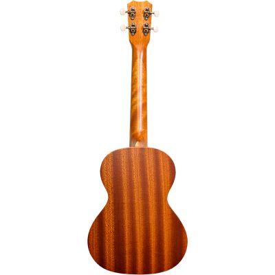 Die MT 4 HNS Tenor-Ukulele ist aus Mahagoni gefertigt und mit einer dekorativen Laser-Gravur in Form von kleinen Meeresschildkröten versehen. Das Walnuss-Griffbrett ist mit Einlagen aus Pearloid verziert.