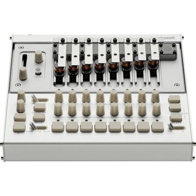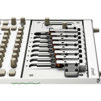 Herzstück des phase8 sind acht unabhängige elektromechanische Stimmen mit jeweils einem stahlbasierten Resonator. Diese werden physikalisch in Schwingung versetzt, um Klang zu erzeugen – kein Sample, kein Oszillator, sondern echte Bewegung. Das Resultat ist ein lebendiger, resonierender Klangkörper, der direkt auf Berührung, Anschlag, Streichen oder Klopfen reagiert.