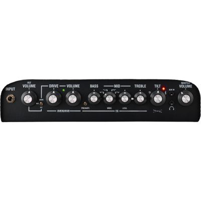 - Regler: FET-Lautstärke, Lautstärke, Preshape-Schalter, Drive-Schalter-FET, Drive- und Kanal-Mix-Optionen, Drive, Drive-Lautstärke, Bass, Mitten, Mitten-Voicing-Schalter, Höhen, Tilt-Regler, Master-Volume