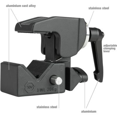 • Zum Festklemmen an Traversen und Querträgern