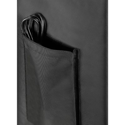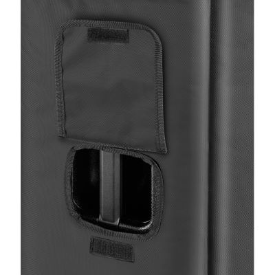 Die Schutzhülle für den PA-Lautsprecher Stinger G3 15 ist 8 mm dick gepolstert und besteht aus strapazierfähigem 1680D Nylon. Der Griffausschnitt ist an den Ränder verstärkt und wird von einer Klettverschluss-Klappe verdeckt. Zusätzlich befindet sich außen ein Zubehörfach.