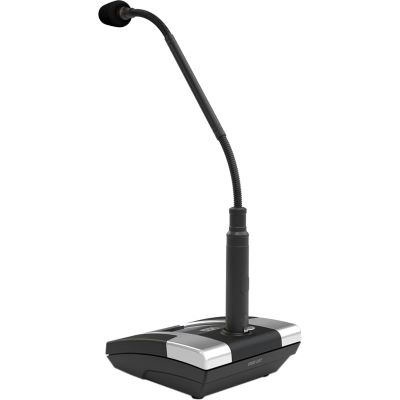 Die Produkte der U500® Serie wurden rund die Bedürfnisse des professionellen Anwenders entwickelt. Das CS4 ist ein schickes, benutzerfreundliches, kabelloses Konferenzsystem, welches effektive Kommunikation durch hervorragende Sprachqualität und den Einsatz modernster Technologie ermöglicht. Mit dem U500® Wireless Conference-Set werden Ihre Tagungen, Sitzungen und Diskussionen garantiert zum Erfolg. Die U500®-Sprechstellen besitzen ein Schwanenhals-Kondensatormikrofon mit Hypernieren-Charakteristik und Leuchtring zur Statusanzeige. Der schwere Tischfuß verfügt neben dem XLR-Mikrofonanschluss mit 28 V Phantomspeisung über eine Taste zum Ein-, Aus- und Stummschalten, sowie eine Gain-Regelung und einen zuschaltbaren 130 Hz Hochpassfilter, der den Nahbesprechungseffekt und Körperschall wirksam reduziert. Ein kontrastreiches OLED-Display zeigt Funkfrequenz, Batteriestatus, die Nummer der Sprechstelle, Gruppe und Kanal an. Der Audio-Übertragungsbereich reicht von 60 Hz - 16 kHz. Zur schnellen und komfortablen Systemeinstellung besitzt der 4-kanalige Empfänger des U500®-Konferenzsystems eine automatischen Frequenz- und Kanalsuche, Infrarot-Synchronisation, einen digitalen Encoder und vier Tasten zum direkten Zugriff auf die einzelnen Kanäle. Dabei bietet das kontraststarke OLED-Display eine vollständige Übersicht aller Funktionen und Einstellungen wie Stärke von Audio- und Funksignal oder Priorität und Batteriestand der Sprechstellen. Zur Unterdrückung von Übersprechen, Rückkopplung und Kammfiltereffekten lässt sich die Anzahl gleichzeitig freigeschalteter Mikrofone festlegen. Die wahlweise automatische oder manuelle Gate-Einstellung und ein Pilotton sorgen für erstklassige Klangqualität und Störsicherheit des U500 ®-Konferenzsystems. Neben individuellen Kanalausgängen verfügt der Receiver über einen Summenausgang, eine Zugriffssperre verhindert die unbefugte Änderung der Einstellungen, und die RS-232 Schnittstelle ermöglicht das Einbinden in externe Steuersysteme. Zur Systemerweiterung lassen sich bis zu fünf U500®-Receiver kaskadieren und im Master-Slave-Modus betreiben, damit stehen maximal 20 Sprechstellen zur Verfügung. Das U500®-Konferenzsystem ist in drei Versionen erhältlich, die in den Funkfrequenzbereichen 554 - 586 MHz, 662 - 694 MHz oder 823 - 832 MHz + 863 - 865 MHz arbeiten.