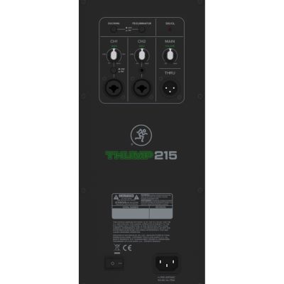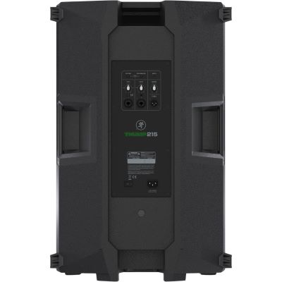 Der Thump215 bietet insgesamt drei Eingänge: Zwei Kombi-Eingänge (XLR/TRS) für Mikrofon- oder Line-Signale sowie einen 3,5 mm Stereoklinkeneingang für mobile Geräte. Über den Thru-Ausgang lässt sich das Signal beider Kanäle an weitere Lautsprecher weiterleiten – ideal für den Aufbau größerer Beschallungssysteme ohne zusätzlichen Mixer.