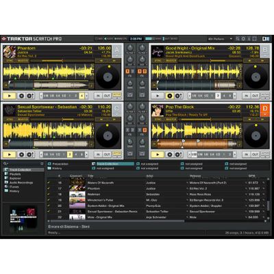 - Bis zu vier Software-Decks über Turntables oder CD-Decks steuern. Die Software bietet denselben Funktionsumfang wie Traktor Pro
