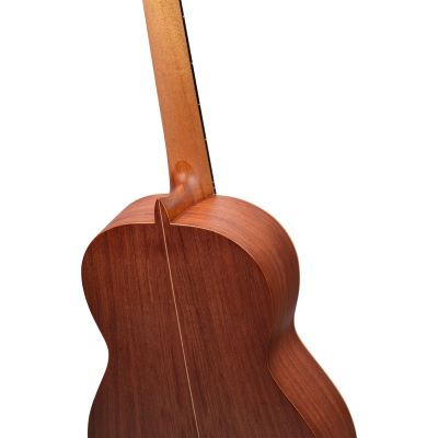 Die Ortega R18SSN 4/4 Konzertgitarre inkl. Gigbag verfügt über eine massive Decke aus Zedernholz. Dieses Tonholz ist bei Konzertgitarren besonders beliebt, da es einen warmen, vollen Klang mit schneller Ansprache erzeugt. Gerade bei Fingerstyle-Spielweisen und klassischen Kompositionen entfaltet Zeder ihre charakteristische Klangfülle.