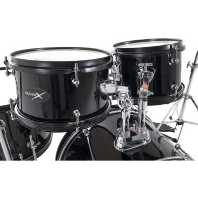 Das Basix Junior Drumset bietet eine speziell auf Kinder abgestimmte Konfiguration. Die verwendeten Pappelkessel bieten ein angenehm warmes Klangbild, das für erste Übungssessions vollkommen ausreichend ist. Die schwarze Folierung verleiht dem Set ein ansprechendes Design und schützt gleichzeitig die Kessel vor Kratzern und Feuchtigkeit.