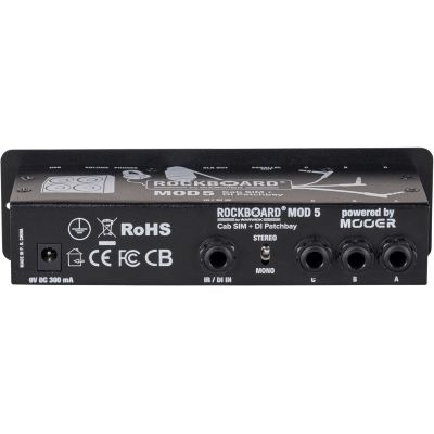Mit einem Gewicht von nur 470 g und kompakten Abmessungen (175 x 85 x 47 mm mit Frontplatte) fügt sich die RockBoard MOD 5 problemlos in jedes Pedalboard-Setup ein. Die Stromversorgung erfolgt über ein optionales 9V DC Netzteil (nicht im Lieferumfang), mit einer Stromaufnahme von 300 mA. Batteriebetrieb ist nicht vorgesehen – was für maximale Stabilität bei allen Anwendungen sorgt.