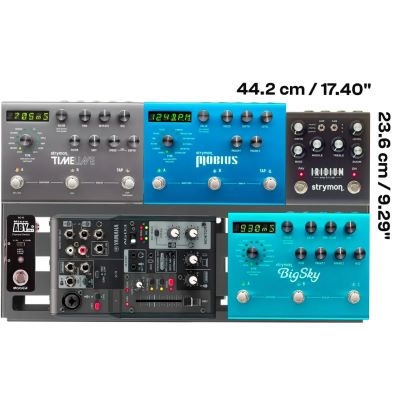 Mit einer Breite von 432 mm und einer Tiefe von 234 mm bietet das TRES 3.0 ausreichend Platz für unterschiedlichste Effektpedale – von Mini-Pedalen bis hin zu größeren Multieffekten. Die Höhe inklusive Gummifüßen beträgt 37 bis 71 mm, was für eine angenehme Bedienhöhe sorgt, ohne unnötig aufzutragen.