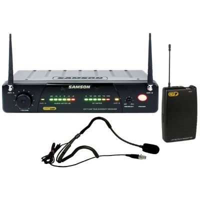 Das Concert 77 Headset System ist das perfekte und auch erschwingliche Wireless System für Fitnesstrainer, Redner und für alle Anwendungen, bei denen man beide Hände frei haben muss. Optional kann man auch SAMSON´s hochwertige Kondensator-Kopfbügelmikrofone, das Samson QE oder das Samson QV an diesem Sender anschliessen.