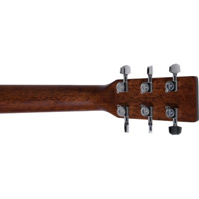 Die Sigma DTC-1STE-SBE kommt mit einem wunderschönen Finish in Sunburst. Die Hochglanzlackierung unterstreicht die edle Optik des Instruments. Sehr schön kommt dadurch auch die tolle Maserung des Tilia Holzes an Boden und Zargen zur Geltung. In Verbindung mit der massiven Decke aus Sitka Fichte erzeugt der Dreadnoght-Korpus einen vollen warmen Ton. Durch den Cutaway ist die Gitarre, für den der es möchte, bis in die hohen Lagen gut bespielbar. Sehr gute und spielfrei laufende Mechaniken runden das hochwertige Gesamtbild ab.