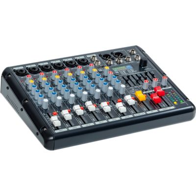 Mit einer Breite von nur 315 mm und einem Gewicht von nur 2,5 kg passt das Mischpult problemlos in jede Tasche oder in dein Homestudio. Trotz seiner geringen Größe bietet es eine durchdachte Kanalstruktur mit Fadern, Solo- und Mute-Schaltern, Aux/FX-Sends und einem 3-Band-EQ pro Kanal. Zusätzlich sorgt ein Stereo-Grafik-EQ für die übergeordnete Klangformung des Gesamtmixes.