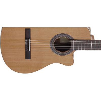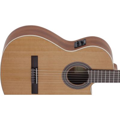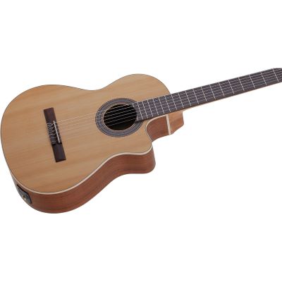 The Z-Nature-CW-EZ is a classical guitar with cutaway and pick-up system, a solid Cedar top and maple bindings. It is perfectly suitable for guitarists who are on the search for a traditionally produced, classic Spanish guitar that can be played on stage and other amplified contexts. Delivery includes an Alhambra Gigbag with 10 Millimeter padding.