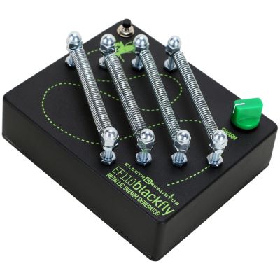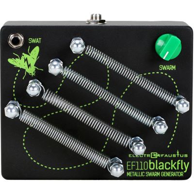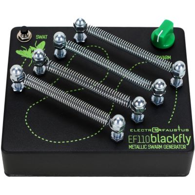 The Electro Faustus EF110 Backfly is a passive noisebox with four springs on top, which serve as a tone generator. The springs are arranged from a low to a high pitch. After playing the Blackfly, it may be necessary to "tune" the springs by tightening the nuts.