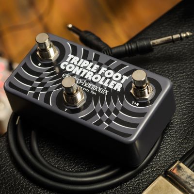 The Electro Harmonix Triple Foot Controller enables function control via externally connected foot pedals. Depending on which pedal it is connected to, the Triple Foot Controller can control functions such as setting the tap tempo, switching through programs, selecting the mode and much more. It works with Electro-Harmonix pedals as well as pedals from other manufacturers.