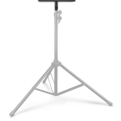 This practical attachment fits on any 35 mm tripod tube and turns a standard speaker stand into a beamer stand. With its 42 x 38 cm footprint, it is also ideal for laptops, Blue Ray players, studio monitors and other devices weighing up to 30 kg. The stable construction is completely made of steel, the edges of the beamer adapter plate are raised 10 mm to increase the bending stiffness and prevent the devices from falling down.