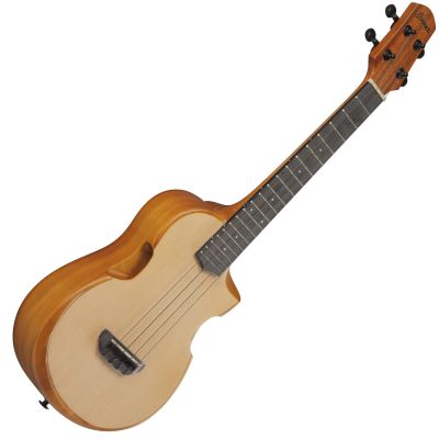 The Ibanez AUT10-OPN tenor ukulele offers an incomparable sound experience. With an Okoume neck for comfort and a Purpleheart fingerboard for beauty and sound quality, it is a true masterpiece. The spruce top ensures a clear and expressive tone. The included gig bag protects the ukulele on the road. The innovative stereo sound hole system creates a surround sound effect for precise sound control. The raised comfort armrest improves the sound and offers maximum playing comfort. The beveled cutaway allows you to reach the high frets with ease.
