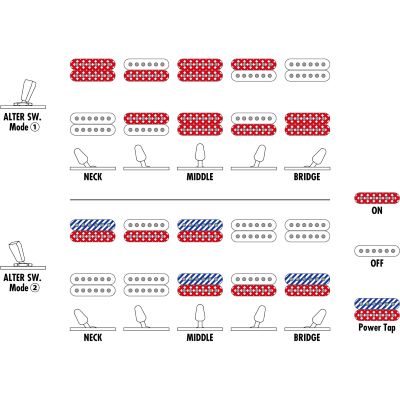 The two Seymour Duncan® Hyperion™ humbuckers with Alnico 5 magnets deliver a warm, dynamic tone with medium output - ideal for versatile applications from clean to high-gain. Thanks to the dyna-MIX10 switching system and Alter Switch, the guitar offers up to ten different sound variations, including realistic single-coil sounds in humbucker format.