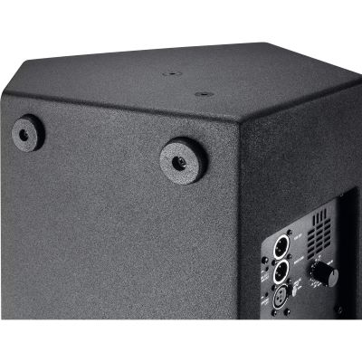 The sturdy bass-reflex enclosure is made of 15mm birch plywood with a structured coating and a front grille made of steel. There is an integral 50° angle for use as a floor monitor and the tweeter horn can be turned accordingly. It has an adjustable tilt stand mount. The innovative Evolutive handles and the low weight facilitate transport. The DDQ 12 active system is made in Germany.