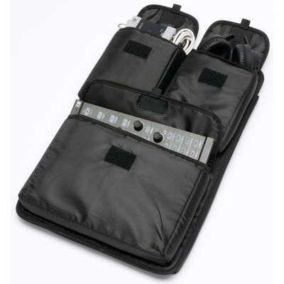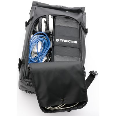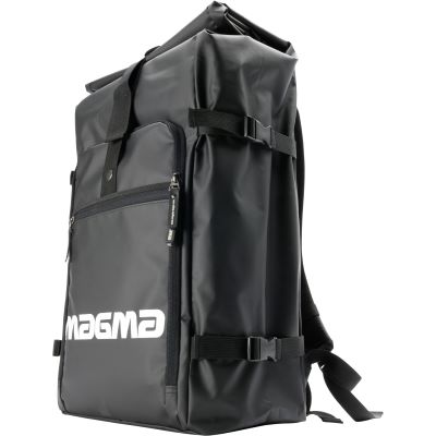 The new Rolltop Backpack is an extremely rugged and multi-functional backpack that is suitable for a wide variety applications. From carrying your DJ- equipment, to convenient carry-on luggage, or just as a regular daypack, the Rolltop Backpack does it all well. Its bicycle messenger inspired design features a variable “rolltop” opening that gives you an extra 20 cm when unfolded to fit oversized gear like the Pioneer DDJ, the Numark NS-6, 2-octave keyboard controllers, or even multi-effect pedals. It includes also a removable, padded accessories panel with a laptop compartment and 3 storage pockets to stow smaller items as audio interface, headphones, adapters and cables. The ergonomic, S-curved backpack straps, the well padded cushioning panel, and the hip & chest belts, provide a high level of comfort for your spine and make it comfortable for walking and city biking. The new Rolltop Backpack backpack is made entirely of waterproof Tarpaulin, a heavy-duty TPU-coated material to ensure your gear is protected even in the worst weather.