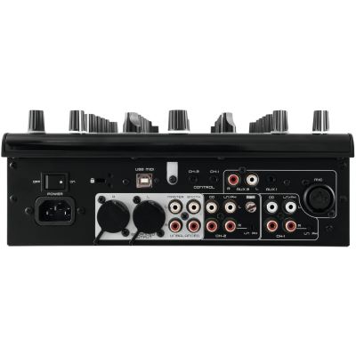 - Inputs: 2x Line Cinch stereo, 2x Line/Phono Cinch stereo switchable, 1x DJ-Mic combi connector XLR/6.3 mm jack balanced, 1x Aux 3.5mm jack stereo, 1x Aux Cinch stereo