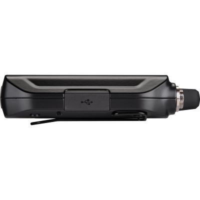 The GLXD1+ bodypack transmitter is the mobile heart of the system. With dimensions of 115 x 66.94 x 28.51 mm and a weight of just 153.1 g (without battery), it can be attached unobtrusively to a belt or strap. The robust housing made of powder-coated cast metal guarantees durability in everyday touring. Power is supplied via an integrated 3.7 V lithium-ion battery, which ensures extended operating times without changing the battery.