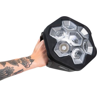 The housing is ultra-compact and weighs just 1.75 kg - ideal for on the go. Thanks to the integrated handle, it not only fits comfortably in any rucksack, but can also be quickly set up and repositioned. It is powered by a powerful rechargeable battery that lasts up to 14 hours at maximum brightness. It is charged via USB-C - fully charged in just two hours. No tangled cables, no sockets - maximum freedom.