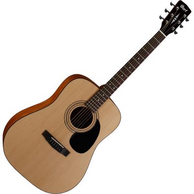 Cette guitare de Cort est particulièrement adaptée aux débutants du jeu de la guitare acoustique. Elle a un corps Dreadnought avec une table d'harmonie en épicéa et un fond et des éclisses en acajou.