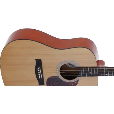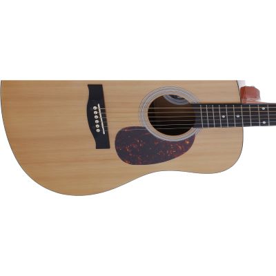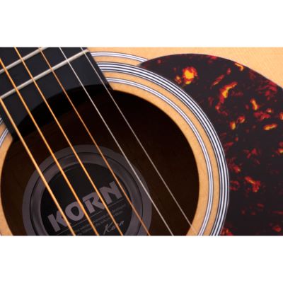 Notre guitare acoustique de KORN a été fabriquée à partir de bois sélectionnés et des matériaux assortis. La finition noble va bien avec les filets de la table d'harmonie, du fond et de la touche. La touche en palissandre de haute qualité permet un jeu agréable. La construction en forme classique Dreadnought produit un son chaud et caractéristique.