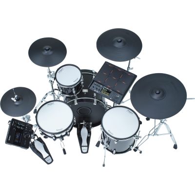 - Neuf pads avec la technologie de déclenchement moderne Roland, dont six grands pads et trois pads d'épaule comme rangée supérieure.