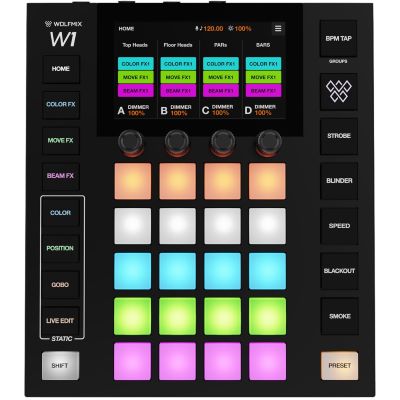 Le Wolfmix W1 MK3 combine un contrôle DMX professionnel, une commande de performance intuitive et une construction robuste dans un format compact. Il est idéal pour les DJ, les techniciens d'éclairage, les organisateurs d'événements et les productions en tournée qui souhaitent une flexibilité maximale sans ordinateur portable.